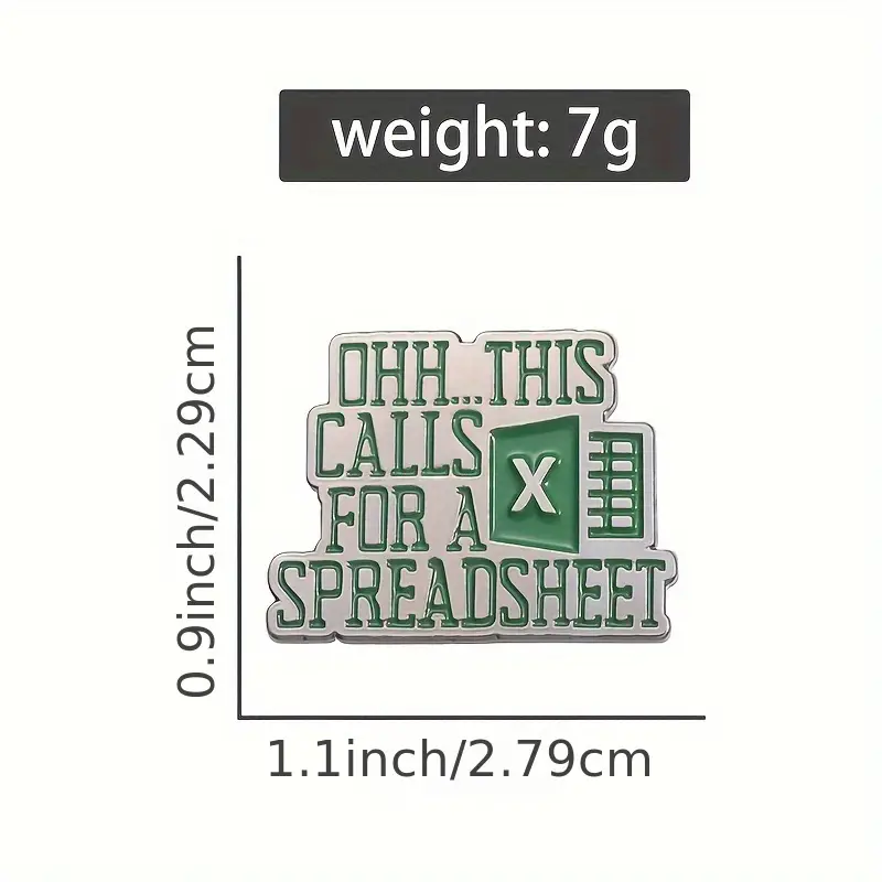 - Excel Spreadsheet Solution Pin: The ultimate office nerd badge featuring the iconic Excel interface with the truth every data lover knows - sometimes life's complexities require proper organisation. 2.79x2.9cm size ideal for workplace pride and analytical appreciation.