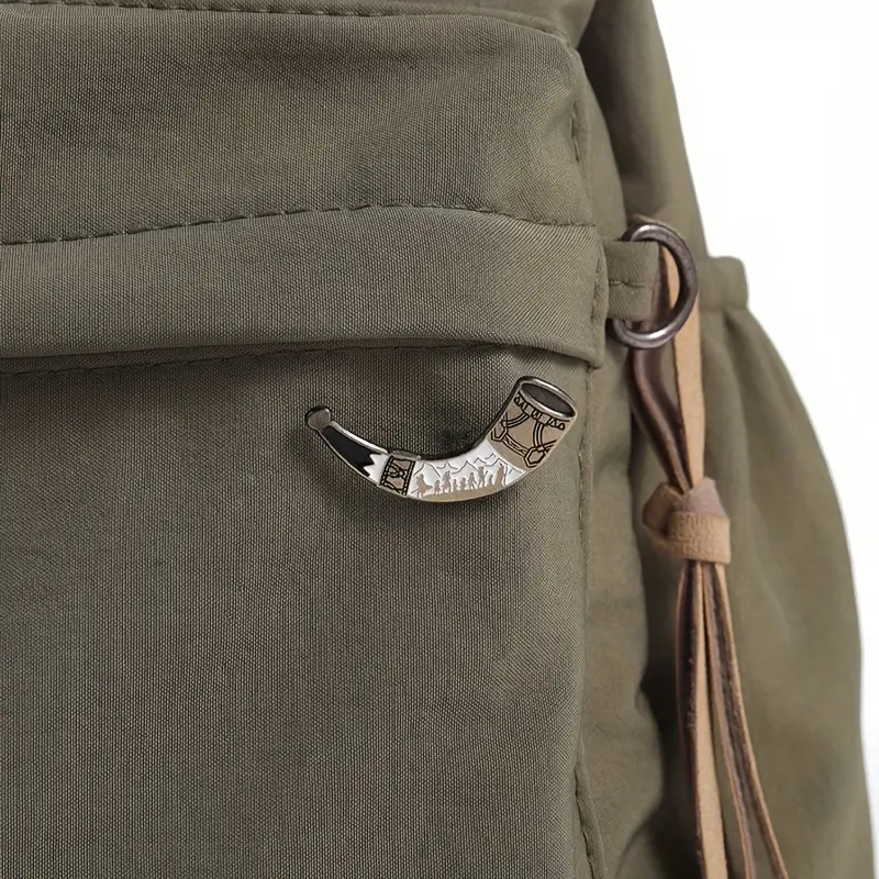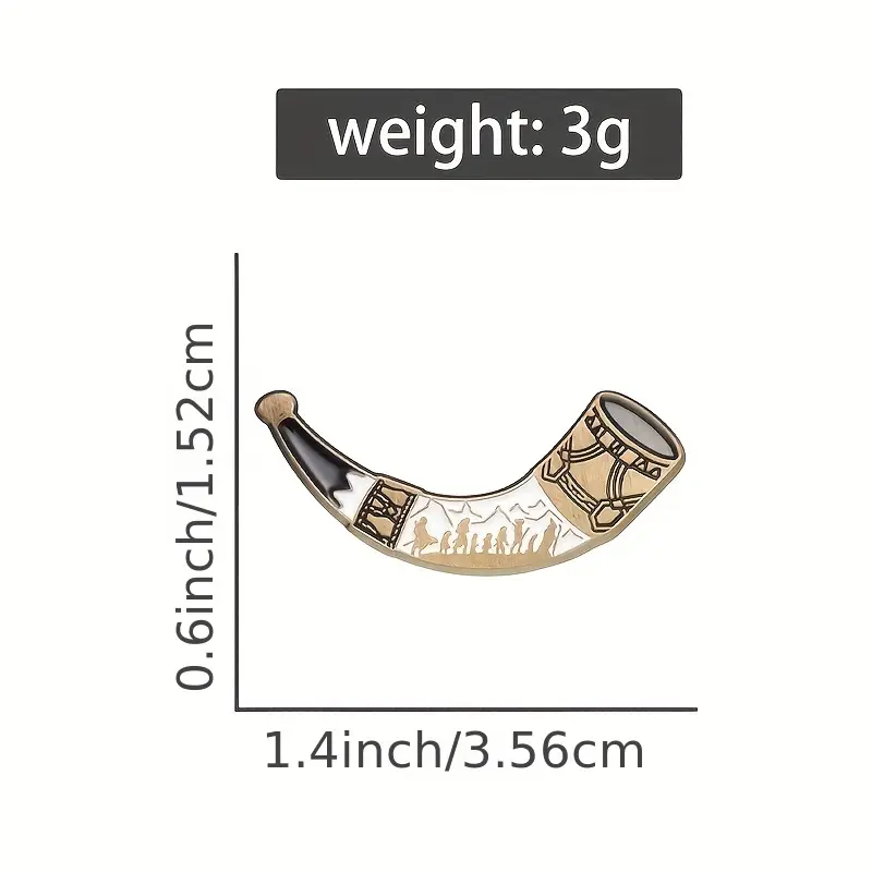 - Horn of Gondor Fellowship Pin: Majestic horn design featuring the Fellowship's silhouettes on their epic journey, representing adventure, friendship, and the call to heroism. 3.56x1.52cm curved design that captures the horn's authentic shape and the saga's spirit of companionship.