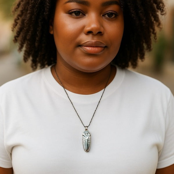 Designed for versatility and personal expression, this necklace comes with a coordinating chain, though the pendant's sturdy construction allows you to easily swap it onto your favourite chain for a completely customised look. The detailed engravings and antiqued silver finish create depth and character that catches the light beautifully.