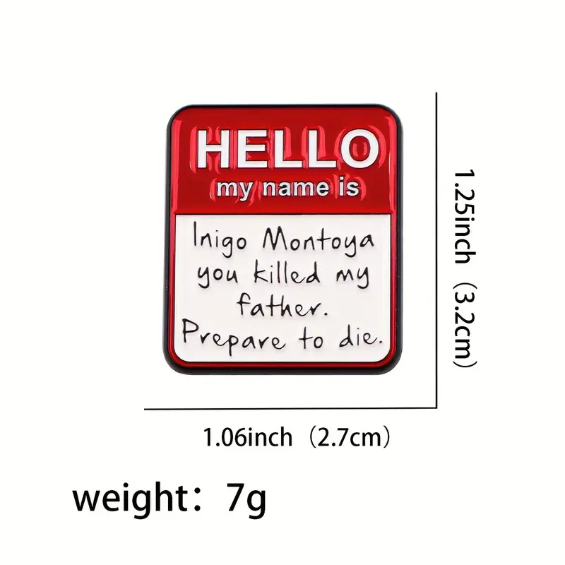 Premium Enamel Pin: High-quality enamel construction with secure pin back and authentic Princess Bride name tag design featuring Inigo Montoya's legendary introduction. Perfect 3.2x2.7cm size for maximum quote impact and inconceivable wearability that's sure to be mostly dead gorgeous on any outfit.
